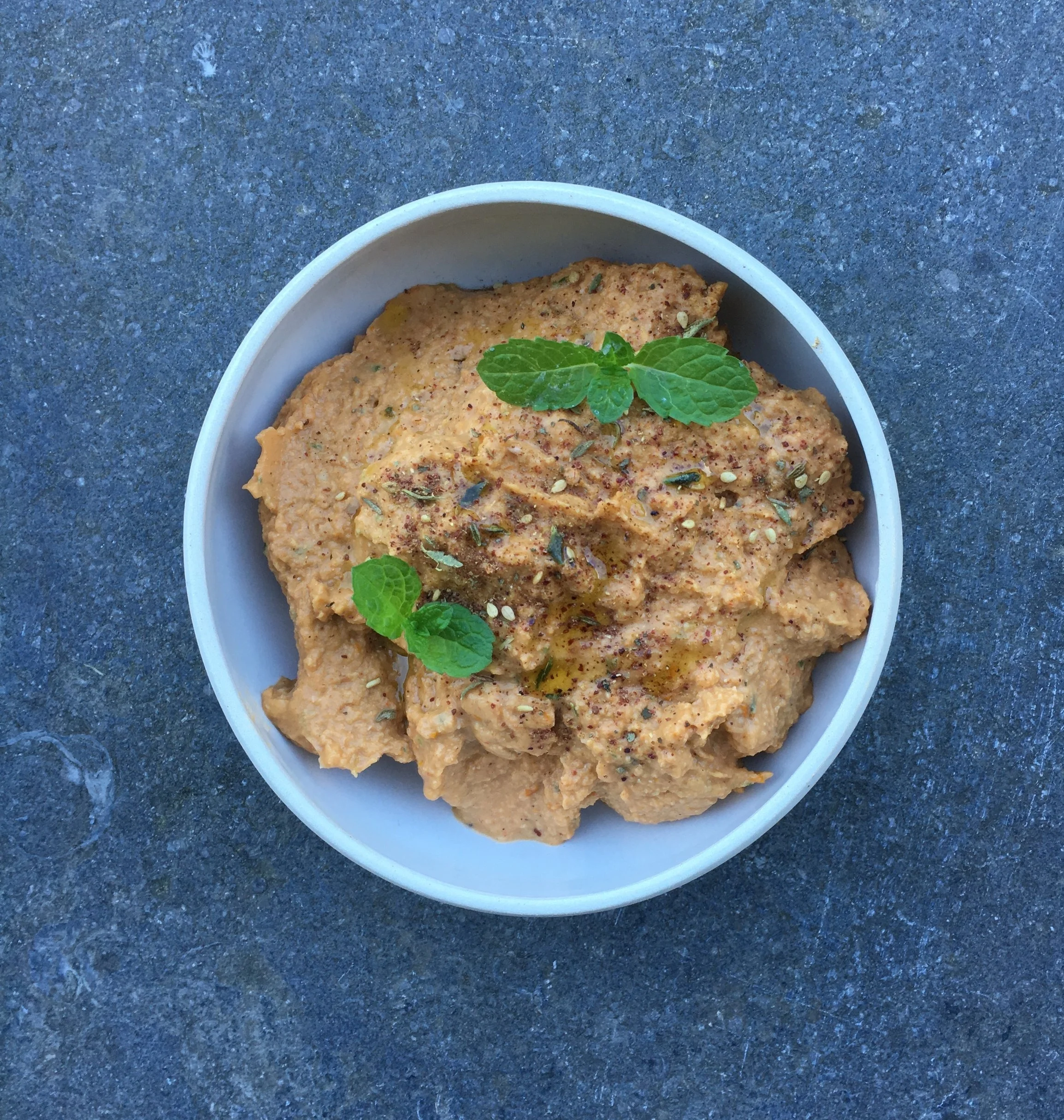 2. Dans un blender, mettez les pois chiches et l’entièreté des ingrédients, ajoutez 1 càs d’eau si le mélange vous paraît trop sec. Mixez jusqu’à l’obtention de la consistance souhaitée.